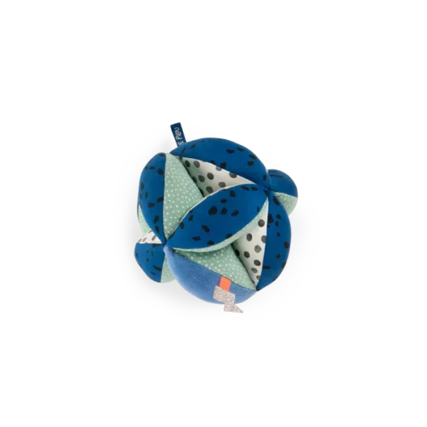 Aussi appelée balle de préhension, elle offre des côtés de couleurs et matières différentes pour stimuler la vue et le toucher. Bébé y glissera ses petits doigts pour apprendre à saisir et secouer les objets… il entendra alors le grelot chanter !