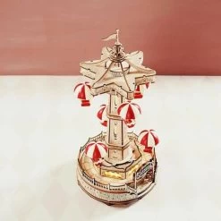 Découvrez cette magnifique Boîte à Musique Montgolfières, une Maquette 3D en Bois. Votre enfant souhaite faire un tour de Montgolfières ? Construisez avec lui cette maquette grâce à ce kit de puzzle en bois 3D et amusez-vous ! Le concepteur s’est inspiré d’un manège du parc d’attractions réel et l’a modifiée, en faisant monter et descendre les montgolfières en quinconce, ce qui est plus créatif et plus amusant.
