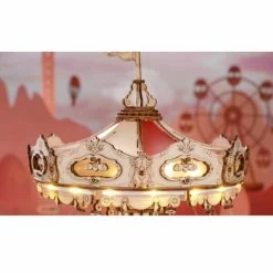 Le design du manège s’inspire du manège à balançoires d’un parc d’attractions. Avec le mouvement intégré, les sièges seront suspendus au sommet rotatif du carrousel et la musique et les lumières s’allumeront en appuyant simplement sur le bouton. Vous allez adorer la finesse de ces Chaises volantes découpées en rouge et blanc. L’article a une forme de plafond rétro, la cantonnière et la ceinture de la lampe entourent la corniche, l’atmosphère crée une saveur romantique et chaleureuse. Les six côtés du pilier central sont en miroir. C’est comme un mystérieux miroir magique lorsque les lumières s’allument, reflétant le romantisme du paradis et augmentant la beauté et la finesse de l’ensemble de l’agencement.