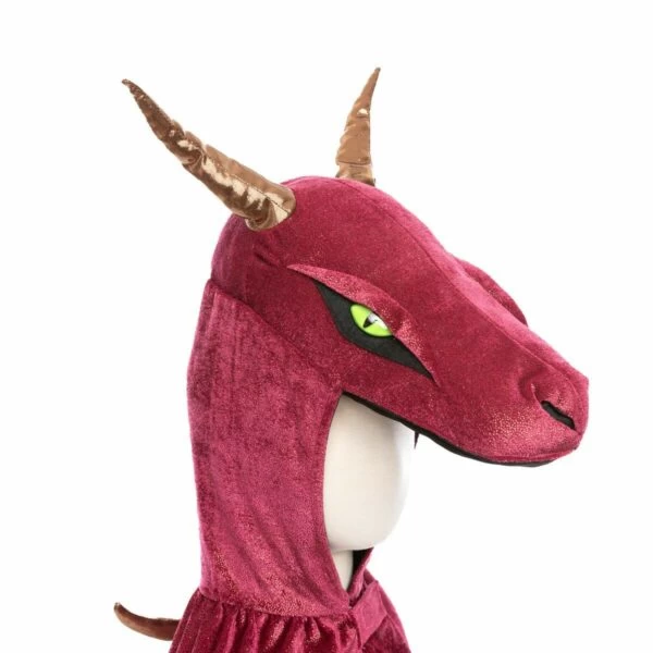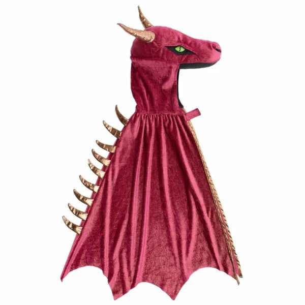 Découvrez cette magnifique cape de Dragon rouge pour les enfants de 5 à 6 ans ! Elle est surmontée d’une capuche 3D avec la tête du dinosaure, des yeux verts spectaculaires et des cornes cuivrées ! Le long du dos vous retrouverez des pointes de la mêmes couleurs que les cornes. Le tissu est doux, confortable et conçu avec un motif scintillant délicat pour imiter les millions d’étoiles dans le ciel ! C’est la cape ultime pour encourager le jeu créatif et imaginatif,