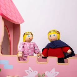 Ce magnifique château de princesse en bois de couleur rose est le décor idéal pour vire des histoires féériques où la jolie Princesse et son Prince charmant vont vivre heureux et avoir beaucoup d’enfants !