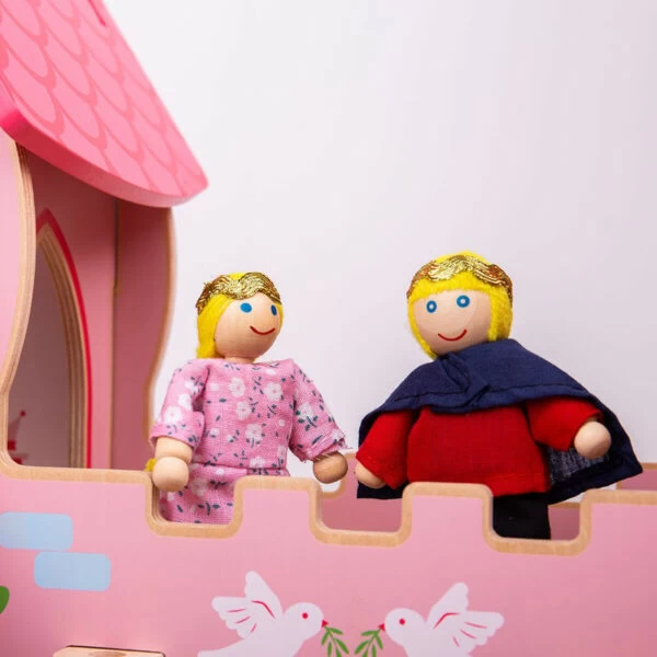 Avec ce joli château de princesse en bois rose, on se laisse facilement transporter dans un monde enchanté !
