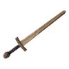 Épée en bois de hêtre très durable. Manche recouvert de suédine très agréable au toucher. Fourreau en feutre avec bordure, château en feutre et corde naturelle pour l’attacher à la taille. Bouclier avec lion brodé.