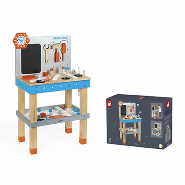 Cet Etabli de bricolage complet en bois est le jeu d’imagination idéal pour pouvoir jouer pendant des heures et développer à la fois la créativité et l’imagination. Encourage aussi la coordination œil main ainsi que les facultés motrices et la dextérité.