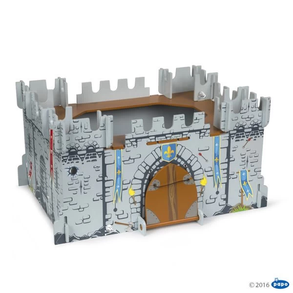 Les différentes pièces de ce grand château en bois s’assemblent facilement par le biais d’encoches. Le pont levis s’ouvre et se referme, un chemin de guet permet aux guetteurs d’anticiper tout assaut ennemi.