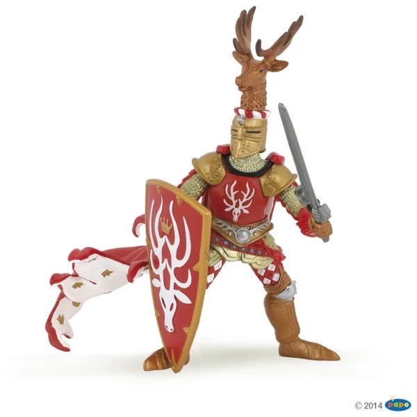 Equipé de son armure et de son heaume à cimier, le maître des armes cerf est prêt à partir au combat! Quoi qu’il en coûte il défendra son royaume contre l’envahisseur et pour cela il sait qu’il peut compter sur son fidèle destrier. Les cors résonnent sur le champ de bataille, la clameur monte parmi les chevaliers, il est temps pour lui de se saisir de son épée et de son bouclier orné d’un cerf.