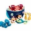 La pêche magnétique pour le bain est composée de 5 « poissons » à attraper : Alice la renarde, une étoile de mer, un crocodile, un poisson et une raie.