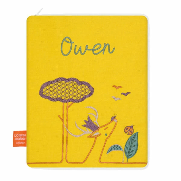 Ce beau protège carnet de santé personnalisable brodé au prénom de l’enfant et illustré d’un daim malicieux est un indispensable dès la naissance.
