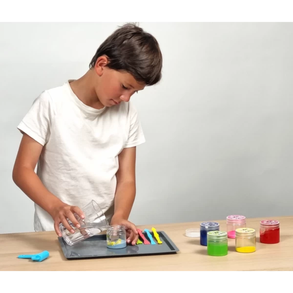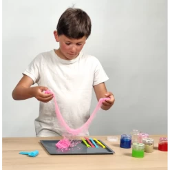 Plongez dans un monde de textures fascinantes avec le Sensory slime ! Ce kit permet aux enfants, à partir de 6 ans, de créer et manipuler différents types de slime pour une expérience sensorielle inédite. Jumping, glow, néon, cotton, métallique, galaxie… chaque slime offre une sensation unique pour éveiller les sens et stimulé la créativité !
