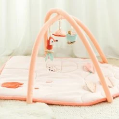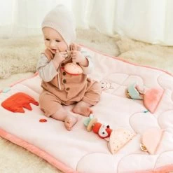 Ce tapis se transporte partout et est un vrai nid douillet pour que bébé puisse s’amuser en toute sécurité.