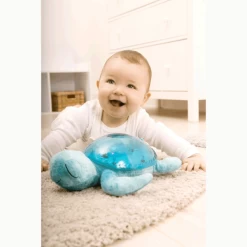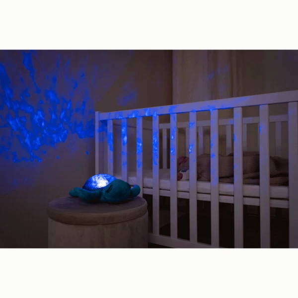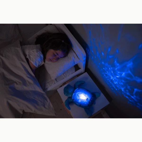 La veilleuse Tranquil Turtle™- Bleue (Rechargeable) apaise bébé dès sa naissance et rassure les enfants qui ont peur du noir. Douce peluche la journée, elle se transforme en veilleuse la nuit venue. Son effet de lumière sous-marine est magique, grâce aux projections de vagues en mouvements. Ses mélodies et ses bruits blancs apaiseront bébé pour un sommeil relaxant.