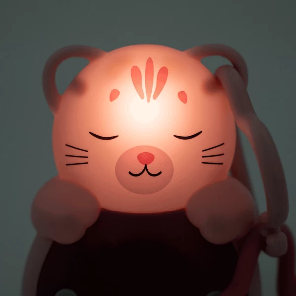 Caractéristiques de la veilleuse nomade multisensorielle petit chat rose :