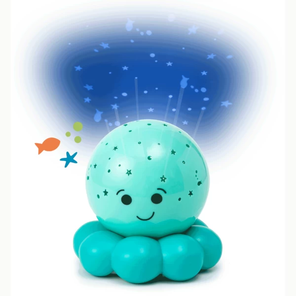 Cette Veilleuse pieuvre bleue à projections lumineuses aide Bébé à s’endormir.
