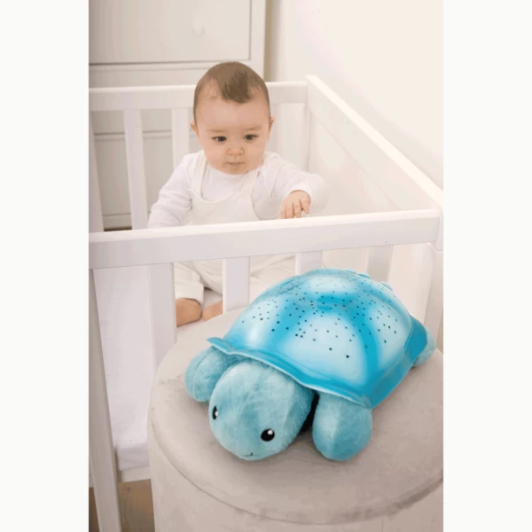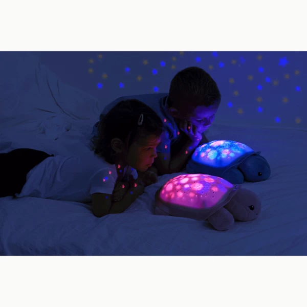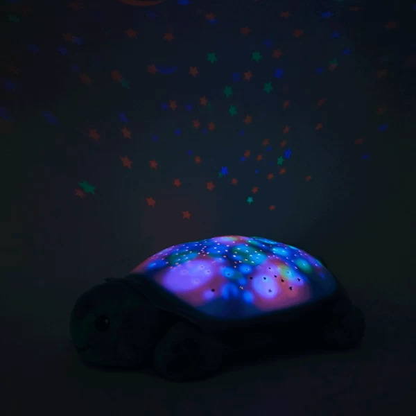 Cette Veilleuse tortue à projections d’étoiles lumineuses est une veilleuse lumineuse qui aide Bébé à s’endormir. C’est aussi une peluche dotée de deux mélodies apaisantes et de centaines d’étoiles qui scintillent. Cette gentille tortue projette plusieurs motifs étoilés colorés sur le plafond et crée ainsi un spectacle lumineux multicolore sur la coquille et au plafond qui enchantera votre enfant au moment de s’endormir.