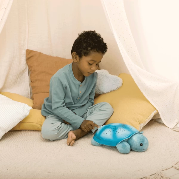 Asseyez-vous avec votre enfant et découvrez les huit constellations majeures, dont la Grande Ourse. Le choix des trois couleurs apaisantes permet à votre enfant d’apprendre à les identifier. L’ambre rayonne de chaleur, le vert représente la nature et le bleu aide à calmer les sens. La lueur douce et éclairante qu’émet la Veilleuse tortue à projections d’étoiles sert également de veilleuse pour rendre l’obscurité moins intimidante. Il suffit d’appuyer sur le bouton situé sur la carapace de la tortue pour allumer les étoiles et les faire briller pendant 45 minutes, le temps pour la plupart des enfants de s’endormir. Puis la veilleuse s’éteint automatiquement pour préserver les piles et permettre à votre enfant de s’endormir profondément. Une nouvelle pression sur le bouton réactive la projection si nécessaire.